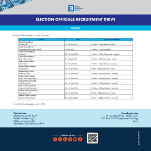 Phase 1 - Elections Official Recruitment Drive Schedule
