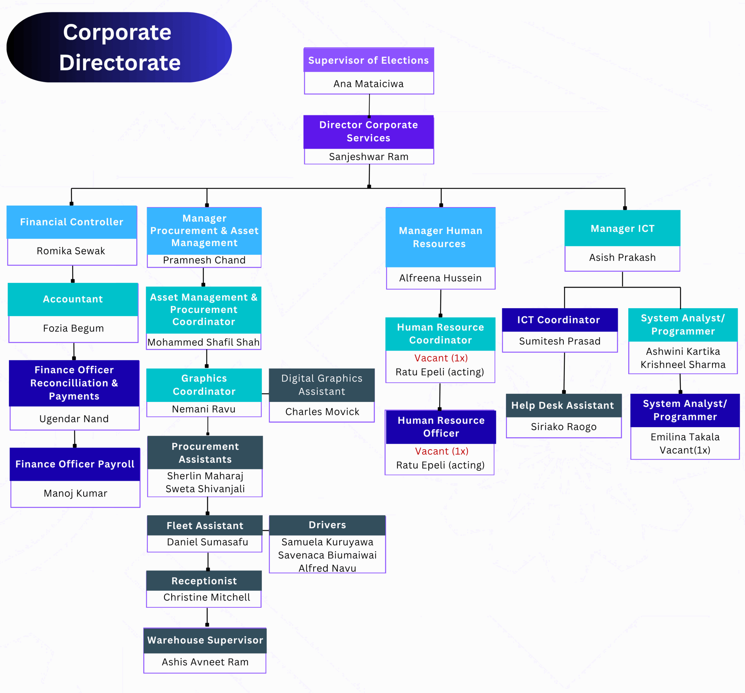 The FEO operates under a structured framework designed to effectively deliver its mandate of conducting free, fair, and credible elections. The organisation is headed by the Supervisor of Elections, who oversees the overall strategic direction and operations of the FEO. Supporting the Supervisor are three main directorates: the Executive Directorate, the Operations Directorate, and the Corporate Services Directorate. Each directorate is led by a Director, with the exception of the Excutive Directorate which is headed by the Supervisor of Elections and comprises a team of Managers, Coordinators, Officers, Administrative Assistants, and field staff including Drivers and Logistics Personnel. This structure ensures that the FEO functions efficiently across all levels—from policy development and legal compliance to voter services, logistics, and stakeholder engagement.