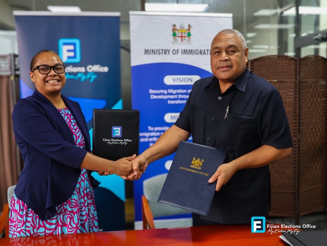 The Fijian Elections Office and the Ministry of Immigration today formalised a key partnership through the signing of a Memorandum of Understanding (MoU) aimed at strengthening the integrity, accuracy, and credibility of Fiji’s electoral processes.